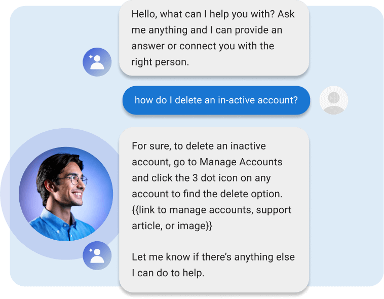 Provide fast, helpful responses through phone, chat, text, or connected sites. Answer questions, promote products and services, book appointments, and handle support issues — all hands-off!