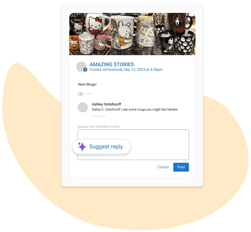 Get unique, on-brand social content with AI trained on your business’ profile and website. With this context centralized in Business App’s AI knowledge-base, content is sure to be consistent across social content, customer communication, and more.