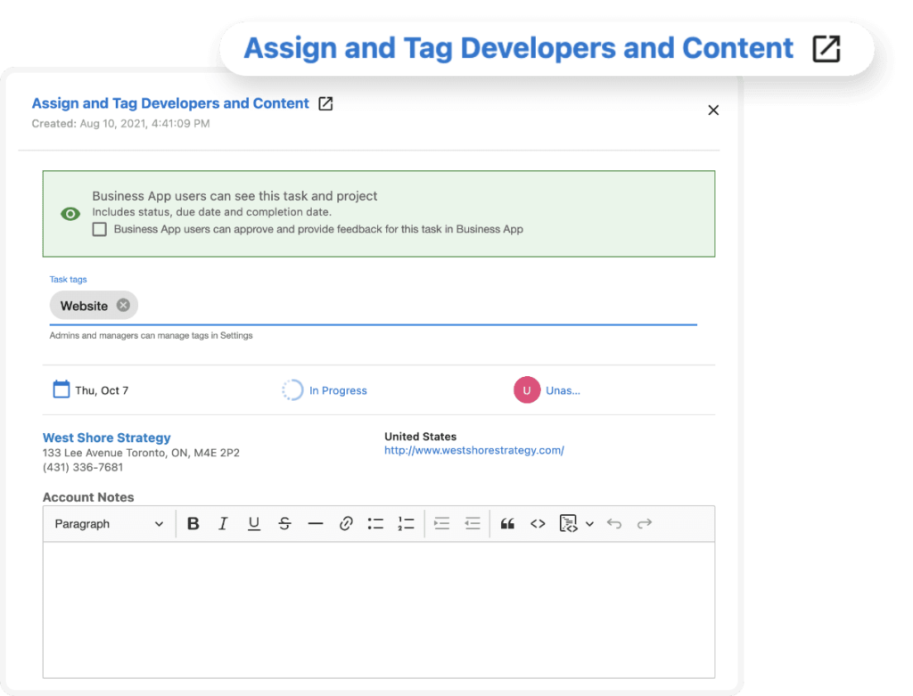 Assign tasks and projects, manage the transparency of both internal and external work and never miss a deadline again.